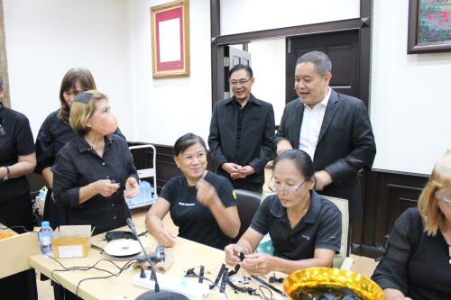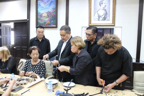 ผู้ว่าราชการจังหวัดปทุมธานี ให้กำลังใจจิตอาสาจัดทำริบบิ้นไว้อาลัย น้อมถวายความอาลัยแด่สมเด็จพระนางเจ้าสิริกิติ์ พระบรมราชินีนาถ พระบรมราชชนนีพันปีหลวง