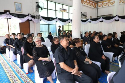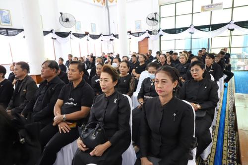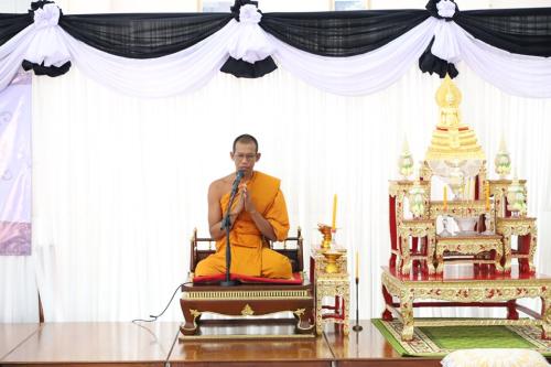 โดยพิธีประกอบด้วยการลงนามถวายความอาลัยจากหัวหน้าส่วนราชการ เครือข่ายกองทุนแม่ของแผ่นดิน และประชาชนผู้ร่วมงาน การแสดงรำมอญปทุมธานีอันอ่อนช้อย เพื่อถวายความอาลัยแด่พระองค์ท่าน จากนั้นผู้ว่าราชการจังหวัดปทุมธานีได้นำกล่าวถวายราชสดุดีและน้อมรำลึกในพระมหากรุณาธิคุณของพระองค์ พร้อมด้วยผู้เข้าร่วมพิธียืนสงบนิ่ง 1 นาที เพื่อแสดงความอาลัยอย่างพร้อมเพรียง มีการบรรยายธรรม โดย พระมหาจุมพล จิตฺตพโล เปรียญธรรม 9 ประโยค เจ้าคณะอำเภอสามโคก เจ้าอาวาสวัดตำหนัก ว่าด้วยพระราชกรณียกิจอันทรงคุณค่า และหลักคำสอนที่ช่วยนำทางให้ประชาชนดำเนินชีวิตด้วยความดีงาม